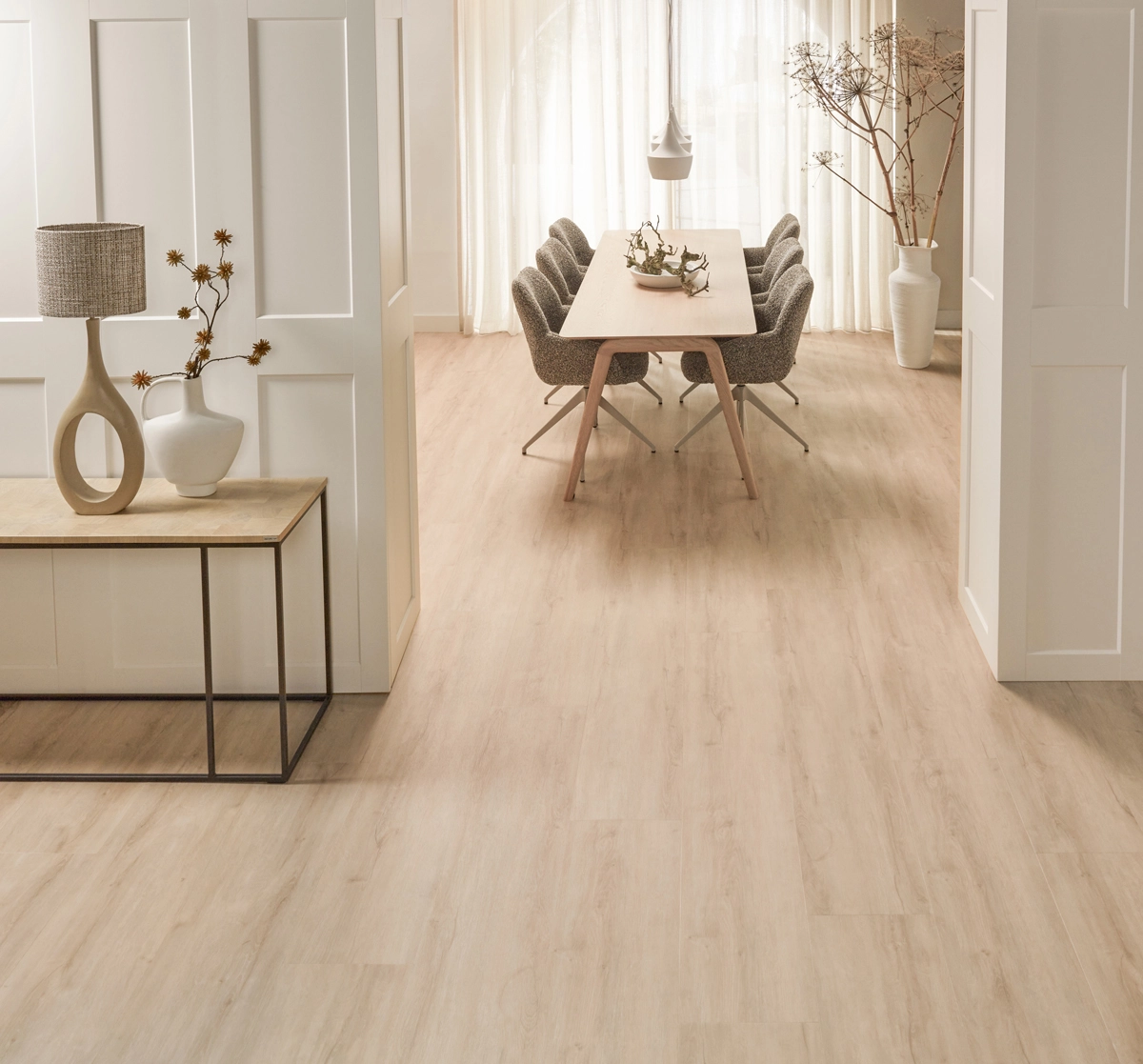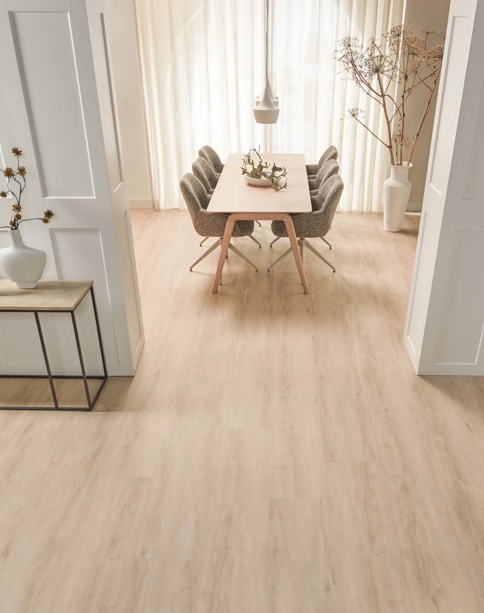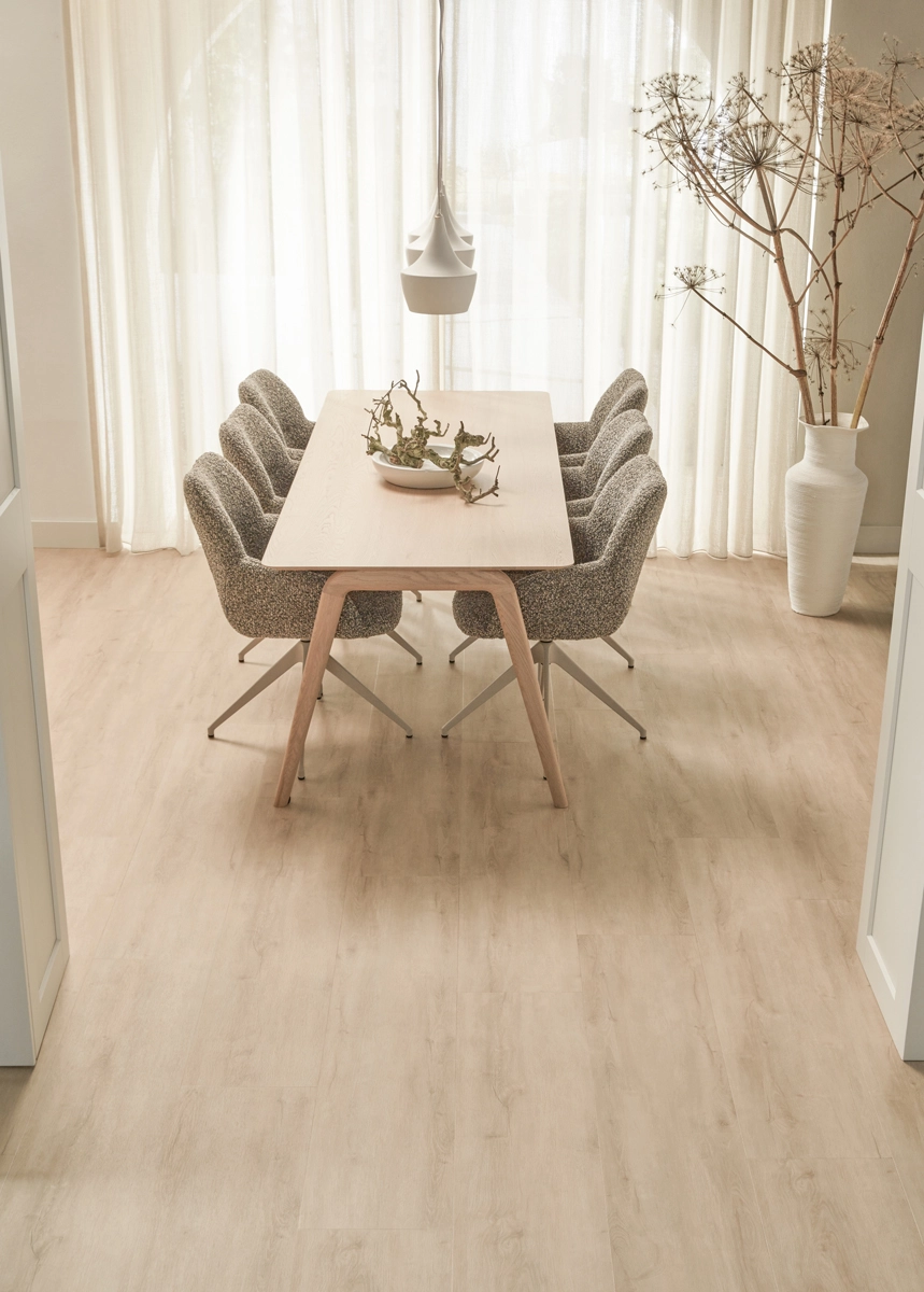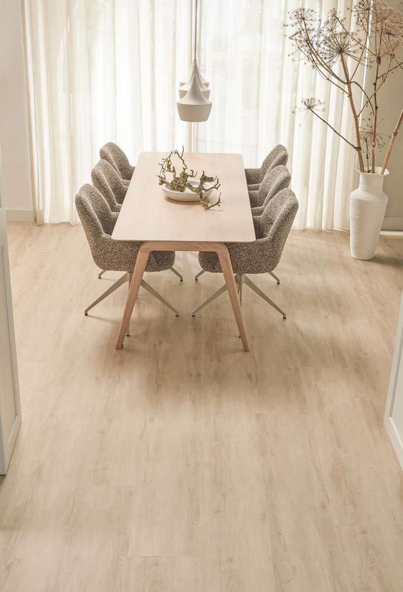 Wist je dat de vloer is voorzien van een voelbare structuur? Daardoor zijn de vloeren haast niet te onderscheiden van een echte parketvloer. Naast het natuurgetrouwe design van de lichtbruine Vinyl vloer, staat de vloer ook voor duurzaamheid. De Crème Eik Click Vinyl vloer voorzien van de keurmerken zoals FloorScore, Emissieklasse A+, Eurofins Gold, GreenGuard Gold, en ISO14001. Deze keurmerken tonen aan dat er geen schadelijke stoffen aanwezig zijn. Alle Vinyl vloeren van Floer zijn ook 'ftalaatvrij'. Dit betekent dat jij en je gezin zonder zorgen kunnen genieten van jouw klik Vinyl vloer!