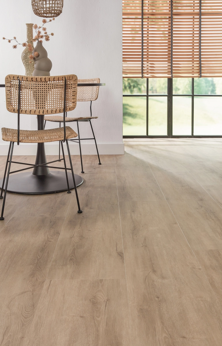 Met een opmerkelijke breedte van 30,5 cm voegt de extra brede klik Vinyl vloer een ruimtelijk effect toe aan je leefruimte. Deze vloer heeft een gebruiksklasse van 23/33/42, waardoor hij geschikt is voor zowel intensief huishoudelijk gebruik als commerciële tot industriële toepassingen. De vloer is voorzien van 'ceramic-beaded technologie', wat extra bescherming biedt. Profiteer van een garantieperiode van 20 jaar met de Rigid Click Vinyl ondervloer. De Natuur Click Vinyl vloer in een plak versie? Bekijk dan het Dorpen Vinyl in Onnen Onbehandeld Eiken.