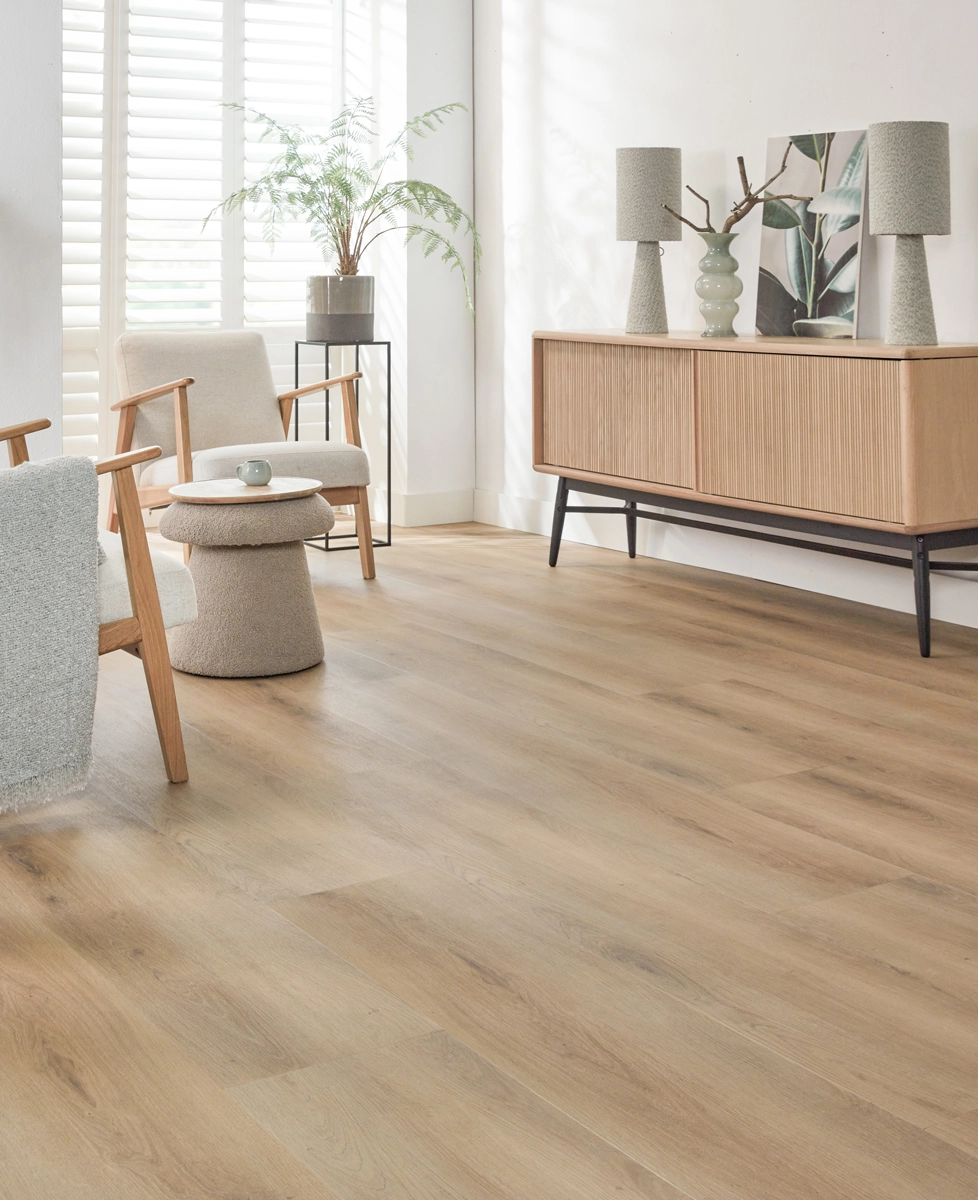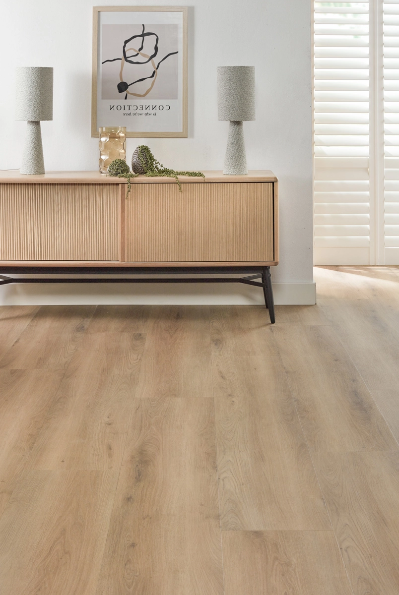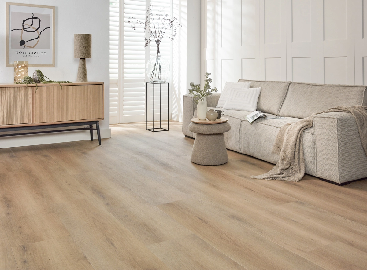 Met zijn unieke breedte van 30,5 cm geeft de extra brede klik Vinyl vloer jouw woonomgeving een ruimtelijk effect. De extra brede click Vinyl vloer beschikt over een gebruiksklasse van 23/33/42, waardoor deze kan worden toegepast in zowel intensief huishoudelijke ruimtes als commerciële tot industriële omgevingen. Bovendien is de vloer uitgerust met de 'ceramic-beaded technologie', wat extra bescherming aan de vloer biedt. Geniet van 20 jaar garantie op de extra brede Vinyl vloer in combinatie met de Rigid Click PVC ondervloer.