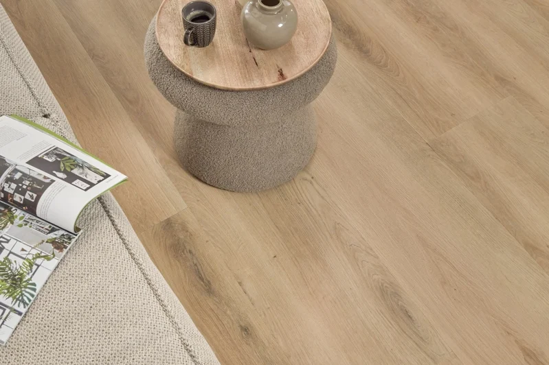 De robuust eiken vinyl vloer is volledig ftalaatvrij en beschikt over kwaliteitskeurmerken zoals FloorScore, Eurofins Gold, Emissieklasse A+, EPD en GreenGuard Gold. De extra grip door de MEGAMAT afwerking maakt de vloer veilig voor het hele gezin en zelfs huisdieren. Bovendien is de vloer waterbestendig en eenvoudig in onderhoud, ideaal voor dagelijks gebruik in een druk huishouden.