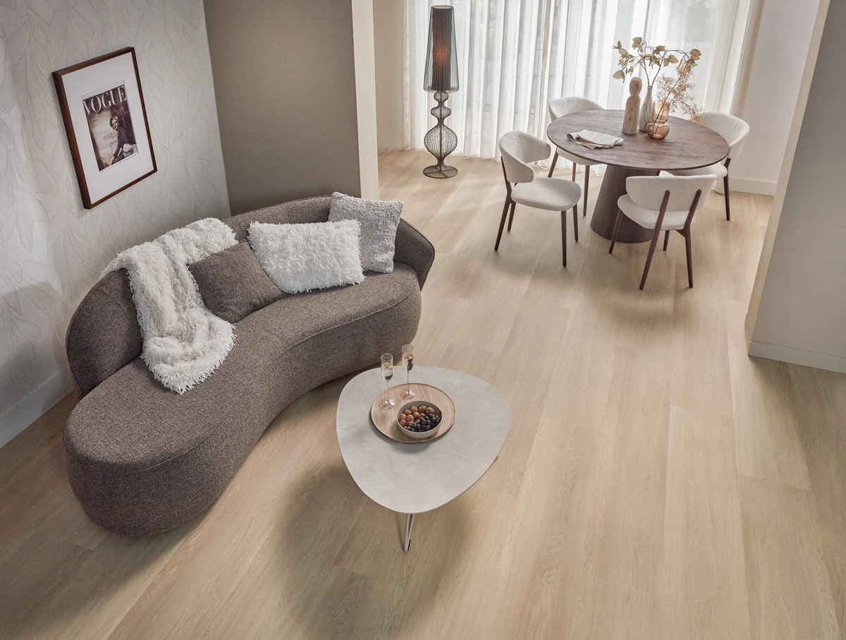 De Floer Landhuis Vinyl – Natuur Eik is een vloer die indruk maakt. Dankzij de extra brede XXL planken en warme eikenhoutlook vol karakter geef je iedere ruimte een stijlvolle. Met lengtes van 154 cm en breedtes van 31 cm creëer je een uiterst ruimtelijk gevoel. Of je nu houdt van een landelijke sfeer of juist gaat voor strak en modern: deze rechte plank vinyl vloer voelt zich overal thuis. De voelbare houtstructuur en ultra-matte afwerking maken ’m bijna niet van echt hout te onderscheiden. En dat alles met de voordelen van Floer Vinyl.