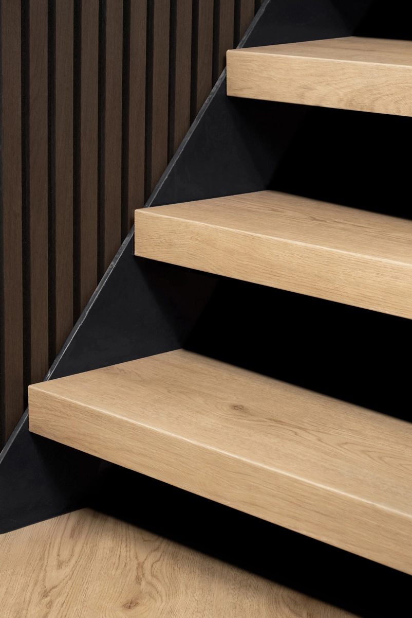 Dankzij de royale diepte van 66,5 cm en het neusprofiel aan beide zijden, zijn deze ondertreden ideaal om een open- of wenteltrap volledig te bekleden. Je kunt de treden gemakkelijk op maat zagen, waardoor je twee panelen uit één trede haalt – efficiënt en praktisch! Voor een compleet afgewerkte trap combineer je ze met bijpassende boventreden. Heb je langere treden nodig? Naast de 100 cm boventreden, zijn er ook 138 cm lange treden beschikbaar.